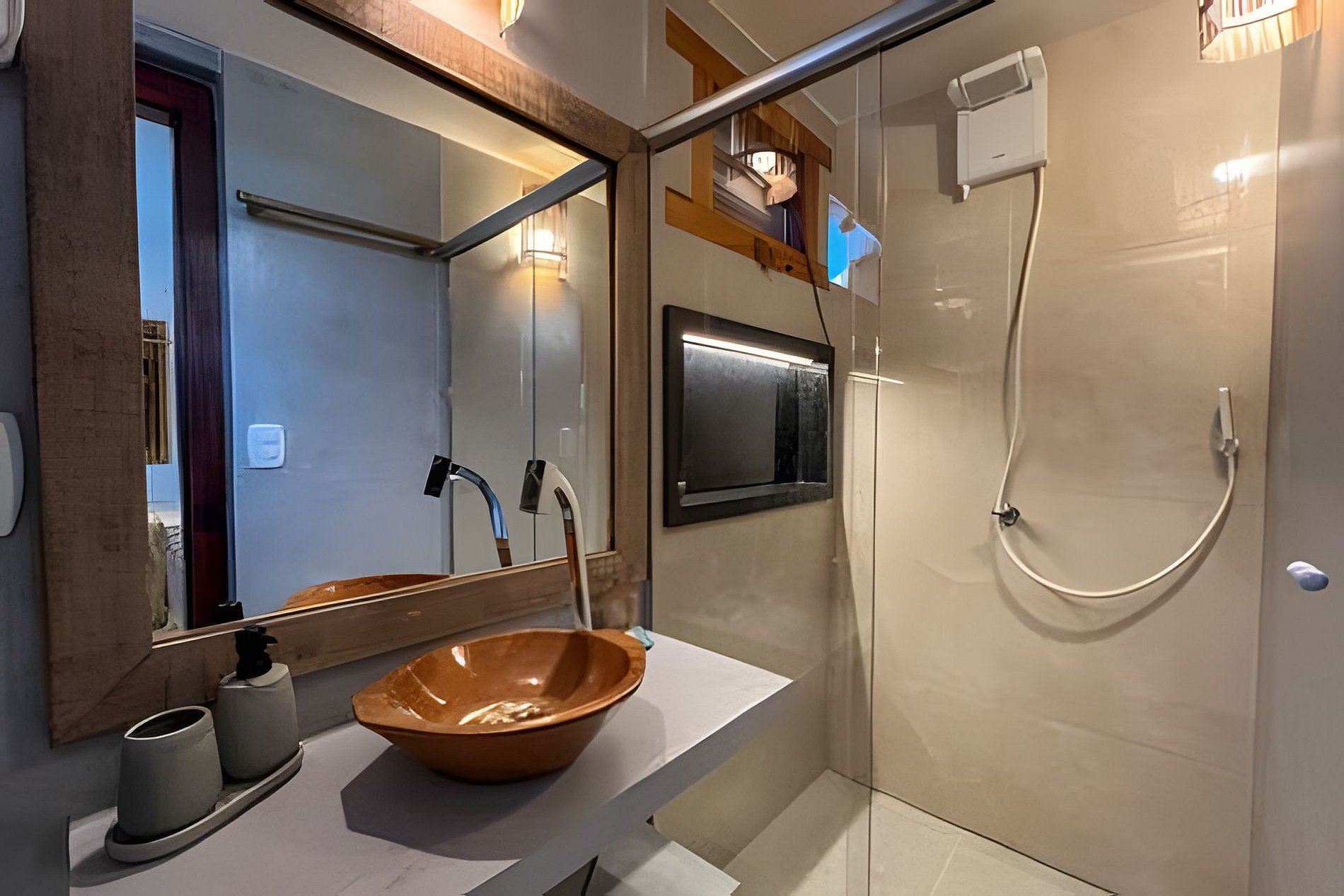 A localização é um grande diferencial: a Praia do Mucugê fica a cerca de 10 minutos de caminhada, a Praia dos Pescadores e o Eco Parque a aproximadamente 15 minutos, e o Centro Histórico e a Rua Broduei a cerca de 5 minutos. O hóspede desfruta da suíte com total privacidade, enquanto as áreas comuns — como piscina, garagem e entrada — são compartilhadas de forma harmoniosa e segura com os demais hóspedes.